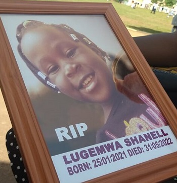 One-year-old Shanell Lugemwa died on May 31 after being knocked unconscious in Gulumwa, Goma Division in Mukono district while playing in the family compound.